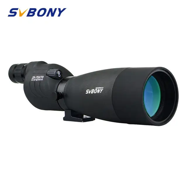 [32920807428]Features:The 25-75x70mm Straight Spotting Scope from Svbony is a great choice for those looking to get an extremely clear view of distant objects. Whether you are hitting the trail, at the range, or on the hunt, this Straight Spotting Scope will bring you spectacular detail with its powerful 25-75x zoom magnification. Additionally, the large 70mm diameter objective lens can gather light needed for viewing in low-light conditions like dusk or dawn, and for observing the night sky. The 25-75x70mm Straight Spotting Scope features fully multicoated optics for improved light transmission and optical clarity, and is fully waterproof and Fogproof.Comes complete with a soft carrying case, and an extendable sunshade for reducing glare.