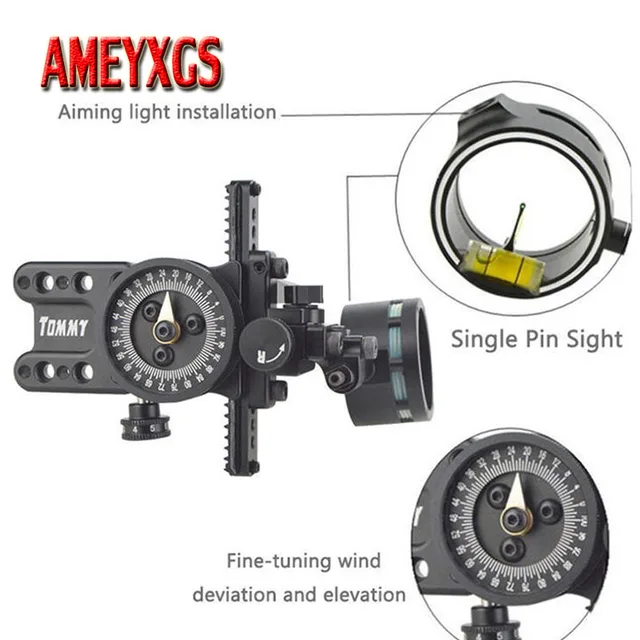 [33035743622]1pc Archery Compound Bow Sight 0.019" Fiber Optic Single Pin Sight Right/Left Hand Aiming Scope Shooting Hunting Accessories