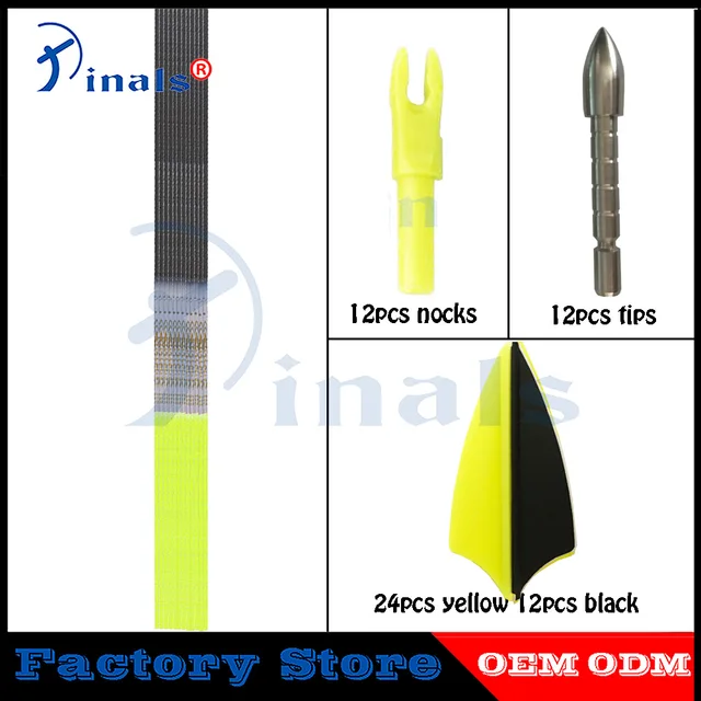 Package including: 12pcs shaft + 12pcs tips + 36pcs vanes +12pcs nocks
