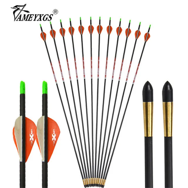 [33010708756]12/24pcs Archery Spine 400 Pure Carbon Arrow 32inch GPI 9.1 Carbon Arrows Shaft For Compound/Recurve Bow Shooting Accessories Feature: 1. Material of arrow shaft: 100% pur carbon fiber, hunting target practice arrows for compound,recurve or long bow 2. Shaft diameter: OD 6.15mm ID 4.2mm; Arrow Body Length: 81.8cm / 32 inch 3. Arrow feathers: 2" rubber feathers, 2 orange and 1 white; green plastic nocks 4. Light weight arrow body, Removable arrow tips, low hand shock with good speed, extraordinary durability for extended use 5. Perfect for target practice and outdoor shooting